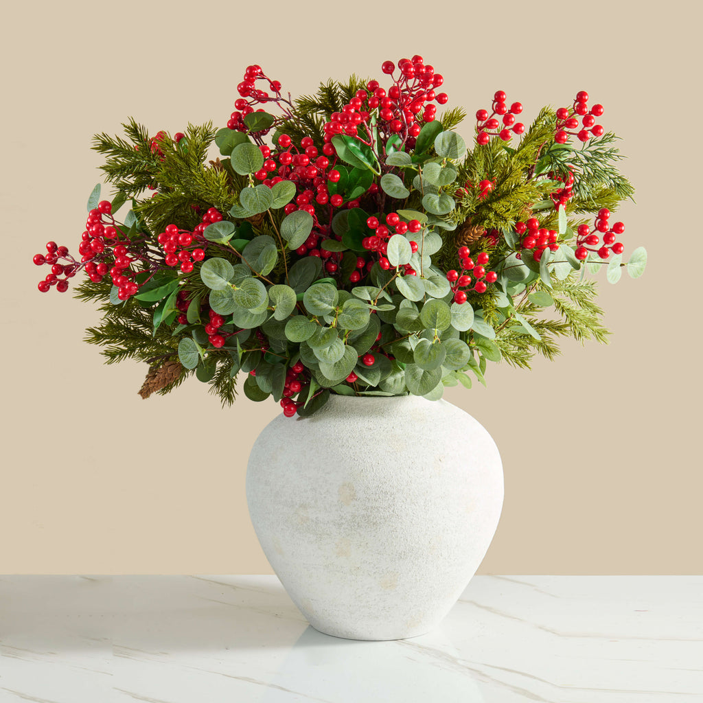 Faux Arrangement - Pine Cone, Eucalyptus and Red Berry